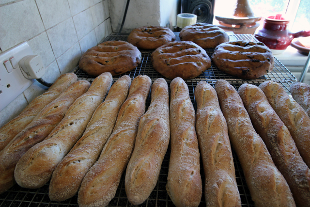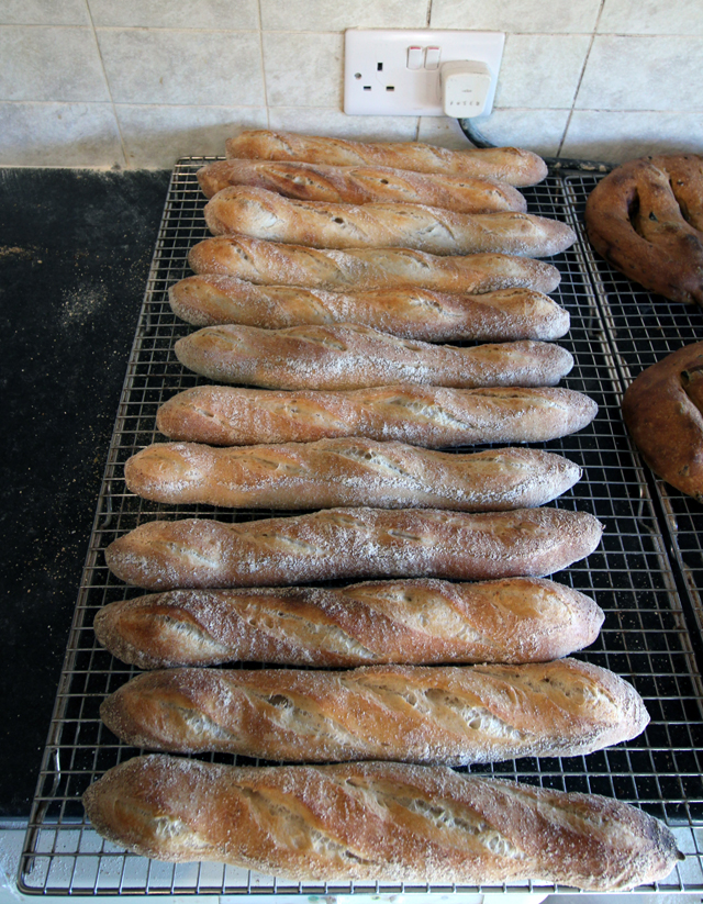 We’re sort of into lunch by this stage, with some jumping up and down to the oven, the Fougasse are out and the baguettes slashed and ready to go in.