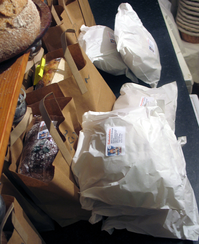 Wednesday afternoon I had a small order of regular breads – 16 classic sourdoughs to mix, again for overnight fermentation. Which left all day Thursday to bake off the classics and for Sue to wrap everything and arrange the orders using the kitchen work surface – a decent working height instead of the dining room table which is back-breakingly low – with me running around playing the kitchen porter.