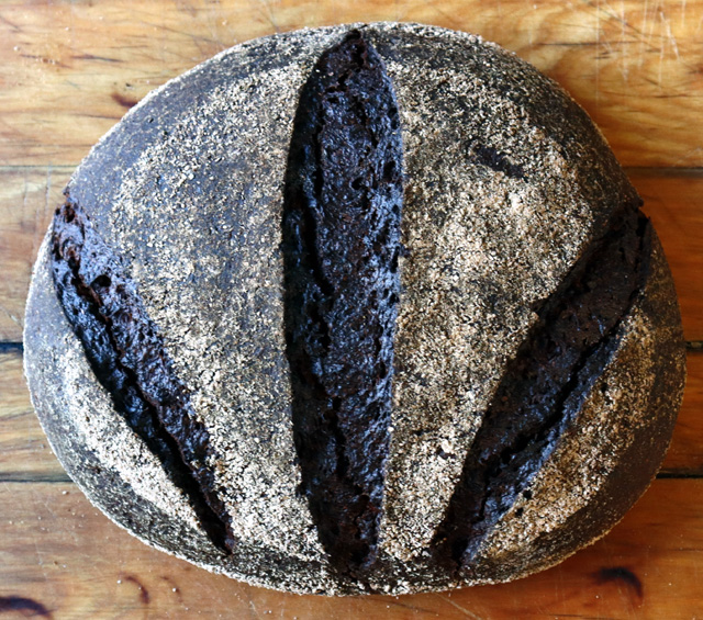 Usual routine, hand mix, 3 x 10 kneads with 5 minute rests, 4 hours fermentation with folds at hourly intervals. Shape, 3½ hours prove in basket. Baked in the Pico 50 minutes, 250C top 220C bottom, steam for 15 minutes. In a convection oven I would have given it a straight 50 minutes at 210C.