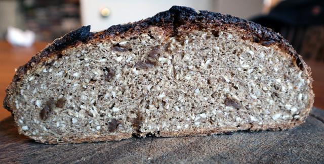 The dough came out extremely stiff. I needed to add 110g water to the formula above. Could be because I used soft figs rather than dried figs soaked, could be a different sort of dessicated coconut. But us bakers need to be able to adapt …