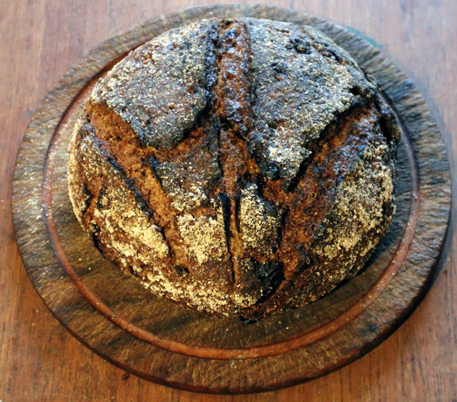 Usual routine, hand mix, 3 x 10 kneads with 5 minute rests, 4 hours fermentation with folds at hourly intervals. Shape. The intention was to give it 3½ hours proof in basket but after 2 hours it was flying. Half an hour later baked in the Pico 50 minutes, 250C top 220C bottom, steam for 15 minutes. In a convection oven I would have given it a straight 50 minutes at 210C.