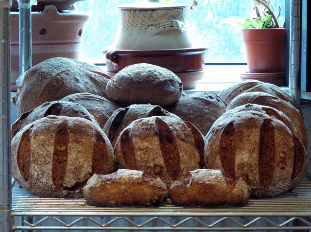 Gently turn out the dough onto a baking sheet floured with wholemeal rye. Slash and bake for about 50 minutes.