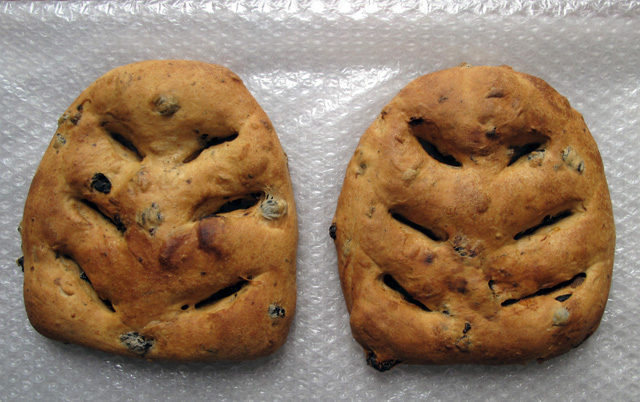 After about an hour, press the dough out a little further and cut slots in a decorative pattern. A rocking motion with a plastic scraper while easing the cuts open with your fingers is a good way to do this. Cover the dough again.