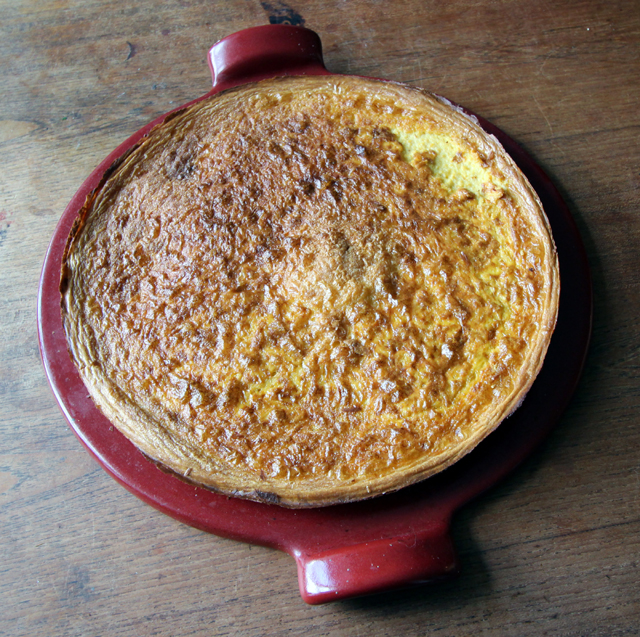This recipe is more or less a straight lift from Paula Wolfert’s huge and wonderful The Food of Morocco. Kalinté is a flat chickpea bread which is known as Socca on the other side of the Mediterranean around Nice or Farinata in Italy.