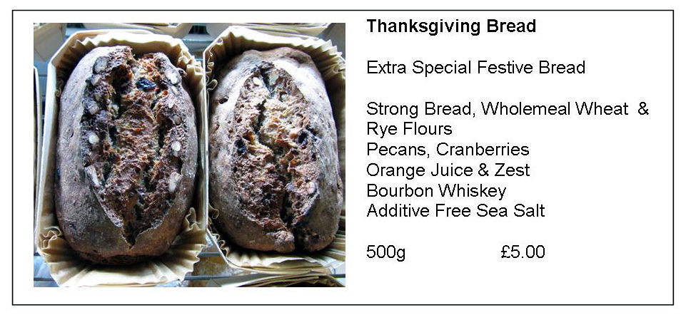 Must have orders for Thanksgiving Bread by Monday 10.00 a.m. because of the cost of the ingredients