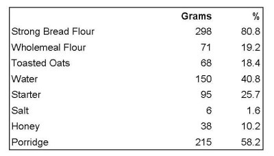 Make the porridge well in advance because it takes a long time to cool. Bring the water and oats to the boil stirring constantly until it thickens. I usually add the honey to the porridge because it’s the easiest way to distribute it through the dough. Cool completely.