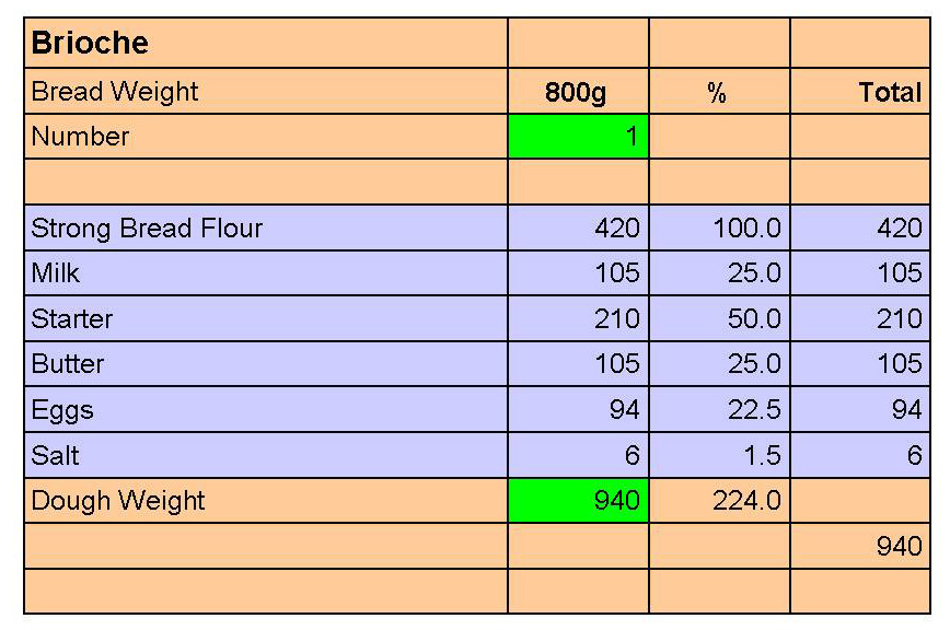 I suppose that this style of poor mans brioche more often than not is sweetened and stuffed with chocolate or preserved fruits. But the plain version makes a really good light loaf or can be divided as burger buns. So keep the dough whole for a loaf or divide into roughly 120g buns (940g divided by 8 = 117.5g). 120g might seem big for a bun but, if you keep them flat, they will take a lot of filling, and are light as well as being robust.